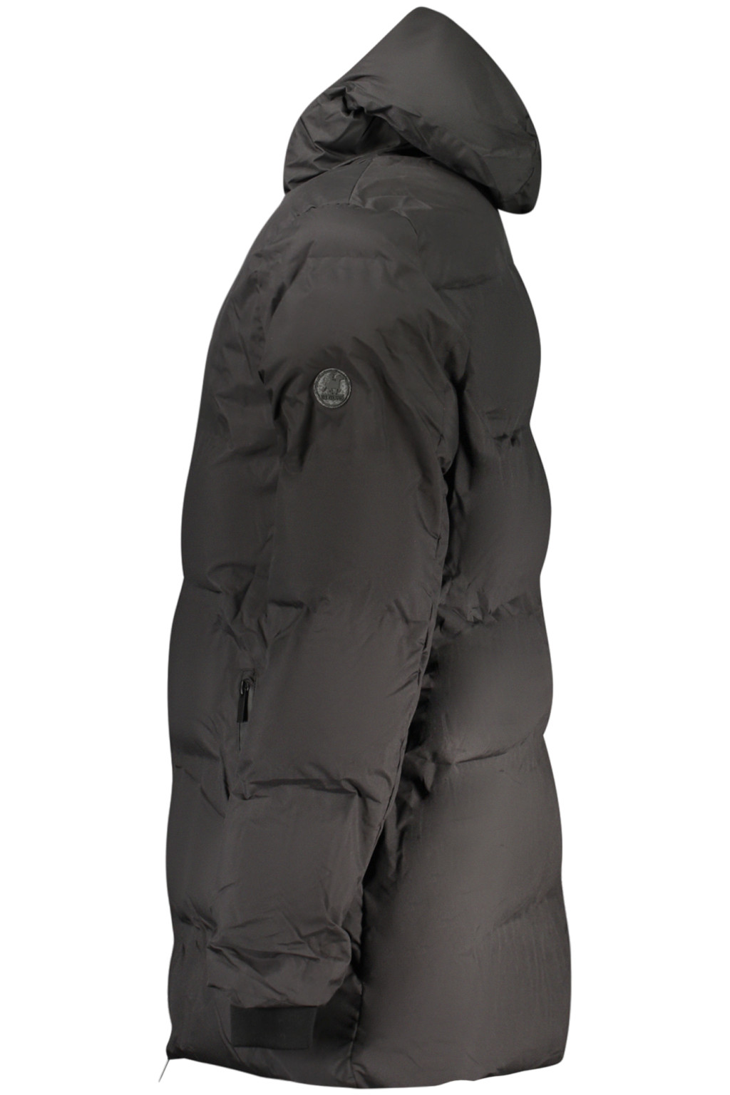 HOSSZÚ UJJÚ KABÁT KAPUCNIVAL, 2 KÜLSŐ ZSEBEL, 1 BELSŐ ZSEBEL, CIPZÁRRAL, APPLIKÁCIÓVAL ÉS LOGÓVAL
