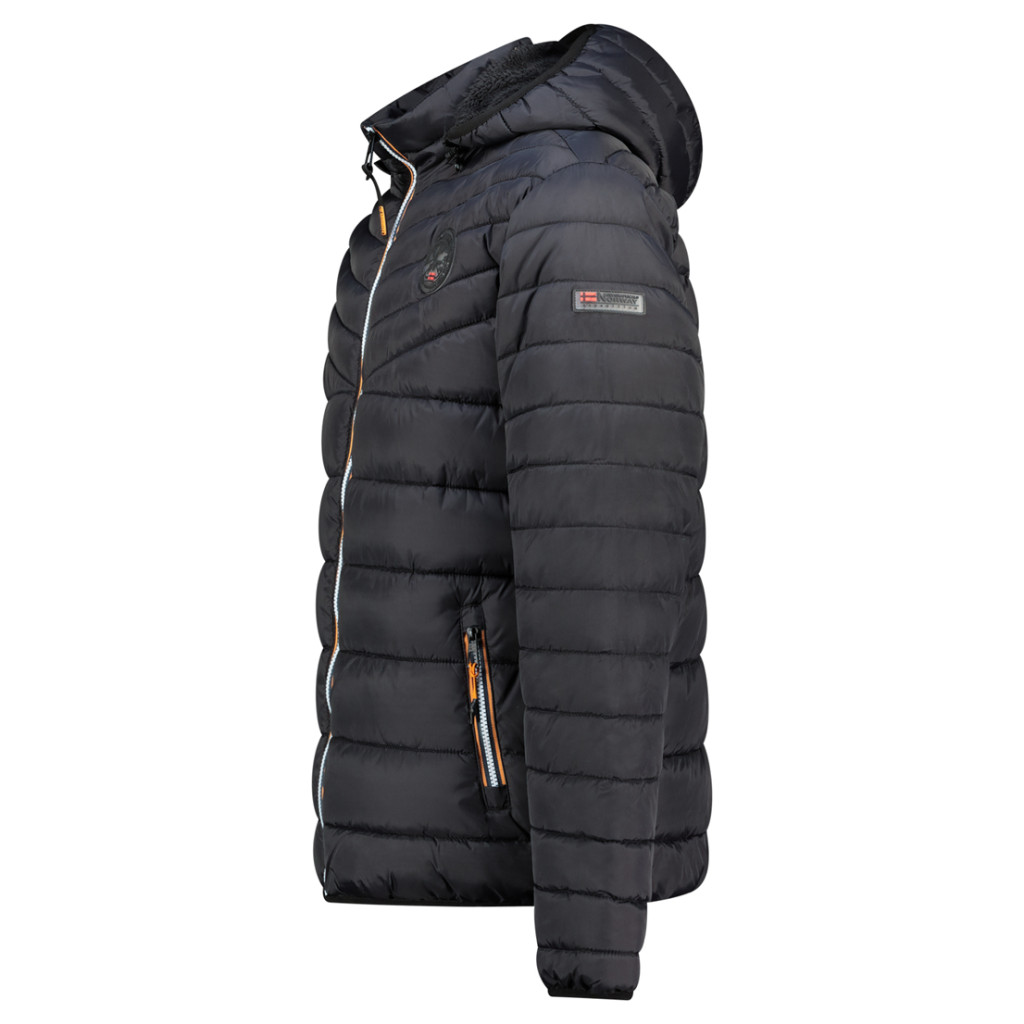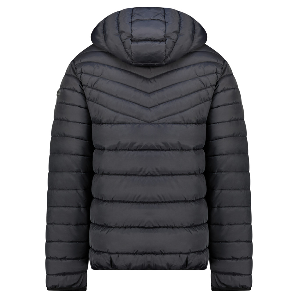 Könnyű, steppelt kapucnis kabát. Fröccsöntött cipzáras záródással és praktikus oldalzsebekkel rendelkezik. A mellrészen elhelyezett embléma modern, sportos megjelenést kölcsönöz. Ideális választás átmeneti időszakra és mindennapi használatra.