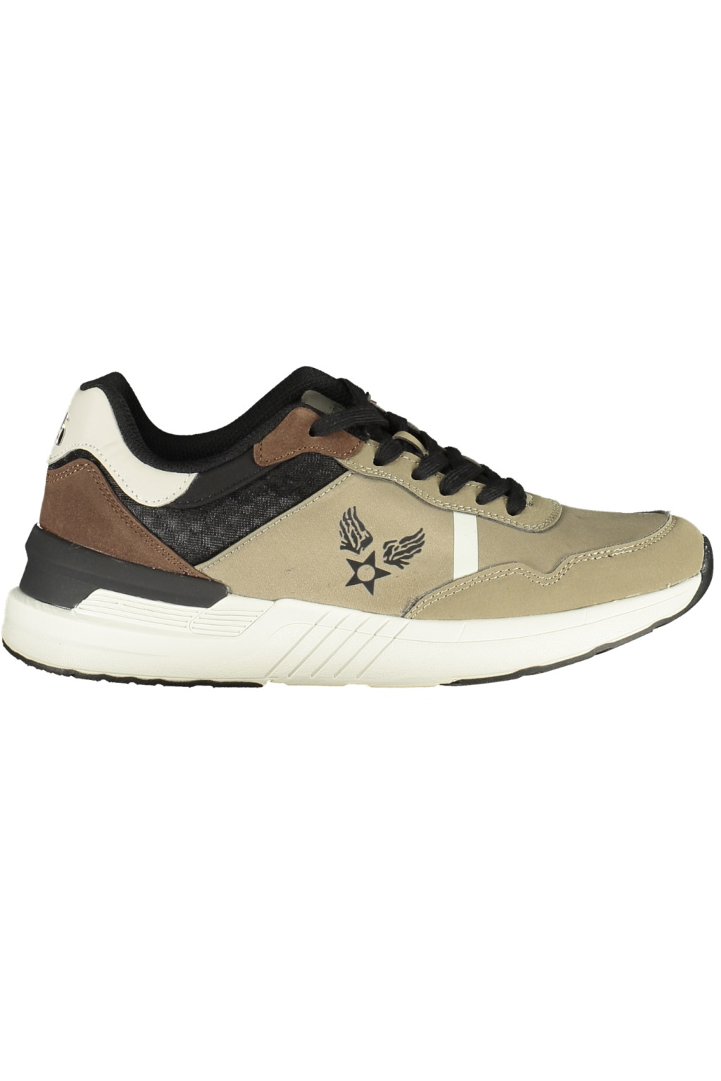 DAMIAN SPORTCIPŐ FŰZŐVEL, KIVEHETŐ TALPTAL, KONTRASZT RÉSZLETEKKEL FEKETE/BARNA SZÍNŰ, NYOMTATÁSSAL ÉS LOGÓVAL