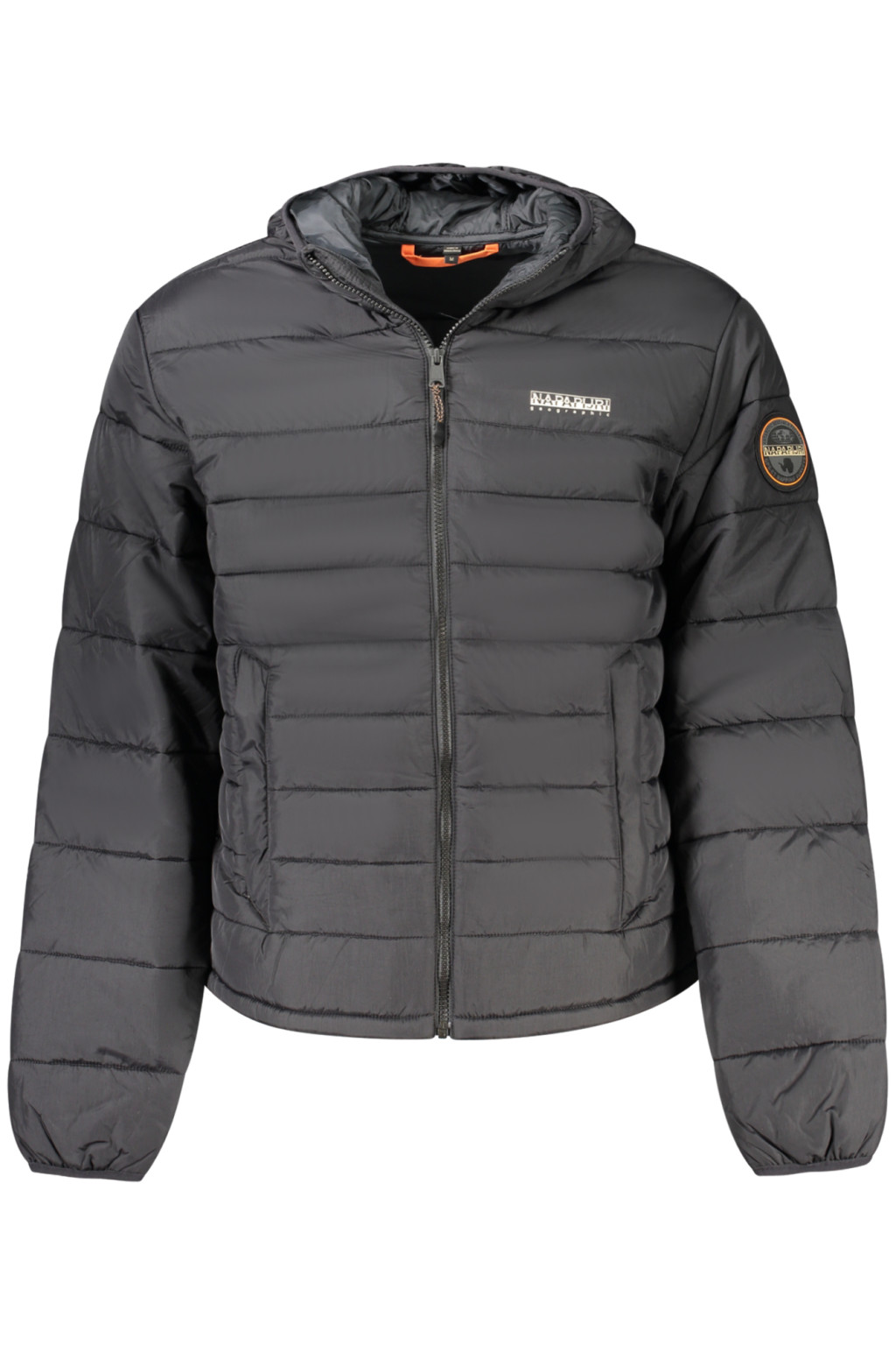 HOSSZÚ UJJÚ KAPUCNIS DZSEKI, NORMÁL FAZON, 2 KÜLSŐ ZSEBEL, 1 BELSŐ ZSEBEL, NYOMTATÁSSAL, APPLIKÁCIÓVAL, CIPZÁRRAL, LOGÓVAL, ÚJRAHASZNOSÍTOTT ANYAGBÓL